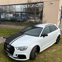 This Audi A3 RS3 has a 2.5-liter 5-cylinder engine that delivers 450 hp and 500 Nm of torque at just 1650 rpm ... supercar performance, however the standard white was certainly not up to par...